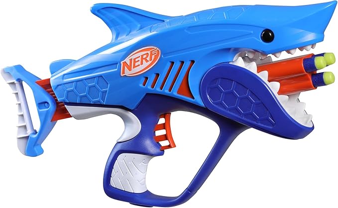 About This NERF JUNIOR WILD SHARKFIRE EASY PLAY BLASTER: The Nerf Junior Wild Sharkfire blaster features a cool shark design... Read more