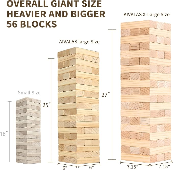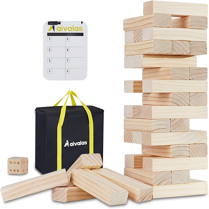 Aivalas X-Large Size Giant Tumble Tower, 56 Blocks Outdoor Yard Games Stacking Games Includes Dice Carrying Bag Scoreboard, Stacking Up to 5FT for Backyard Lawn Party Playing