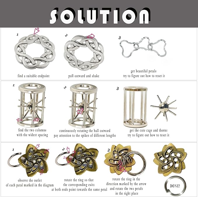 Metal Brain Teasers Puzzles for Kids and Adults 3D Unlock Interlocking Puzzles IQ Logic Test Disentanglement Educational Toy for Kids Adults