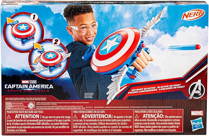 Marvel Studios Captain America Brave New World NERF Skyshot Blaster, Shield Roleplay Toy, Super Hero Toys for Kids 5 and Up