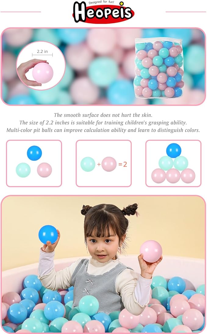 About This ❥ SAFETY - Pack of 100pcs toy Balls with Macaron Green/Light Pink/Light Blue colors, Made of food grade... Read more