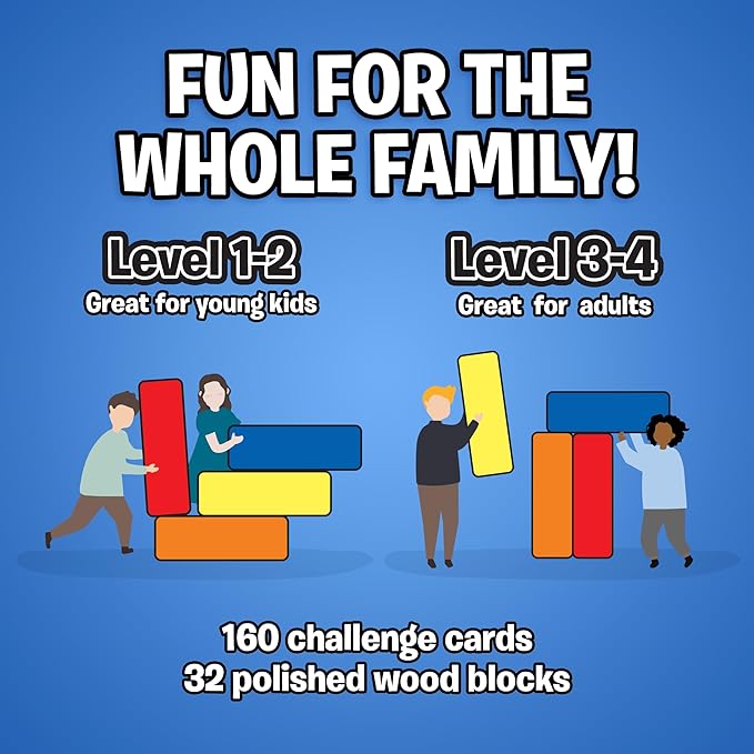 About This UNLIMITED FUN FOR EVERYONE: The Uzzle Stack Royale comes with 32 polished wooden blocks, 160 cards, & 4... Read more