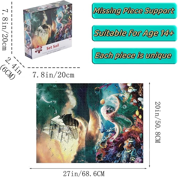 About This 1000 Piece Puzzles for adults: Contains 1000 pieces puzzles and a poster. Finished size: 27" x 20". Jigsaw... Read more