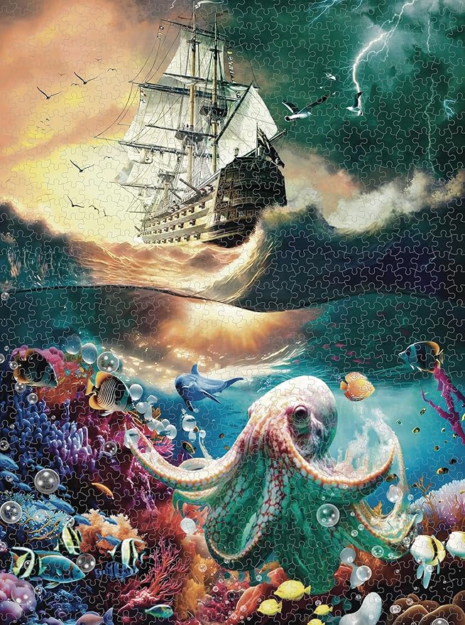 Premium 1000 Piece Jigsaw Puzzle for Adults -27x20 Unique Marine Artwork Pirate shipoctopus Puzzle - Unique Brain Teaser, Difficult and Challenge Large Puzzle Game Toys Gift…