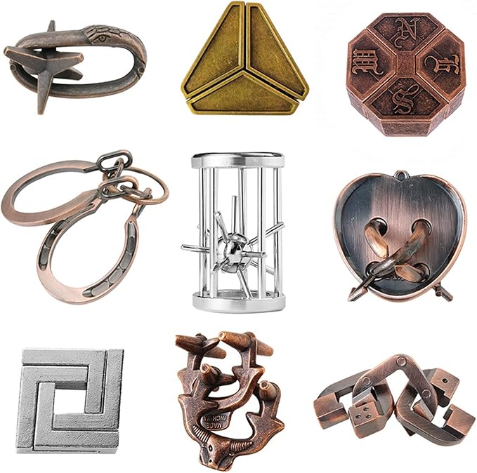 VolksRose 9pcs Brain Teaser Puzzles, Metal Wire Puzzles Set, Mind Smart Game IQ Challenge Puzzle Games, Educational IQ Test Unlock Interlocking Toy Lock Puzzles Gift for Adults Teenagers