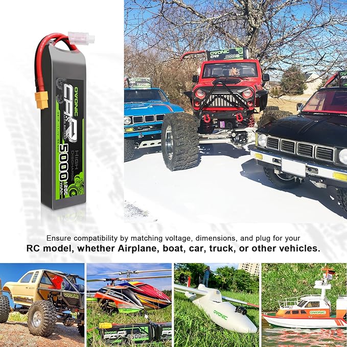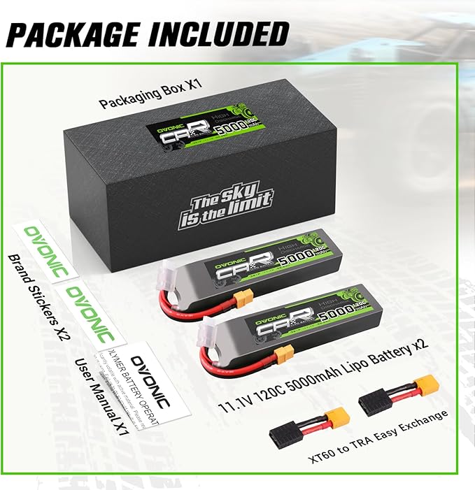 OVONIC 3S LiPo Battery 11.1V 5000mAh 120C with XT60 and TRA Plug Perfect Match RC Car RC Truck Airplane Helicopter Boat Car Racing RC Hobby [6.18''D x 1.81" W x 1.03" H](2 Packs in 1 Package)