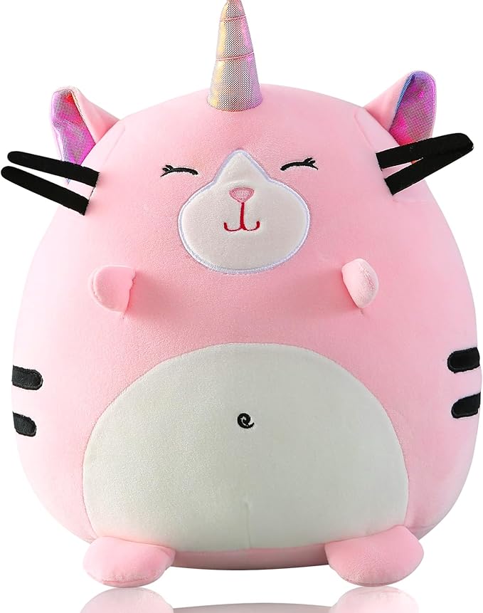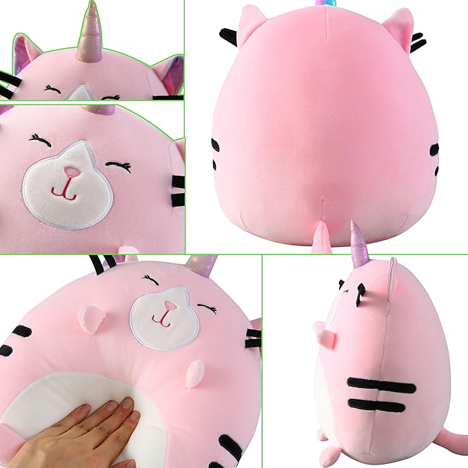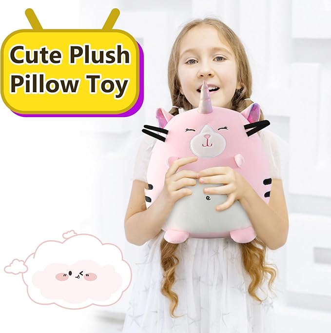Marsjoy 8" Pink Caticorn Plush Pillow Toy Squishy Stuffed Animal Plushie Cute Cat Unicorn Huggable Toy Kawaii Soft Cushion for Girl Kid Birthdays Christmas