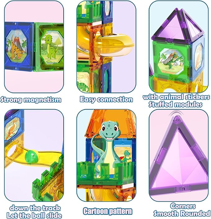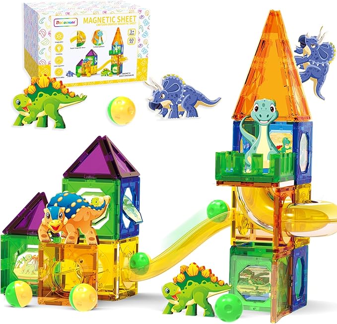 Dinosaur Magnetic Blocks Set, Upgrade DIY Magnets Building Blocks for Kids, 60 Piece Magnets Tiles for Boys and Girls Learning by Playing Games to Improve Imagination and Creativity