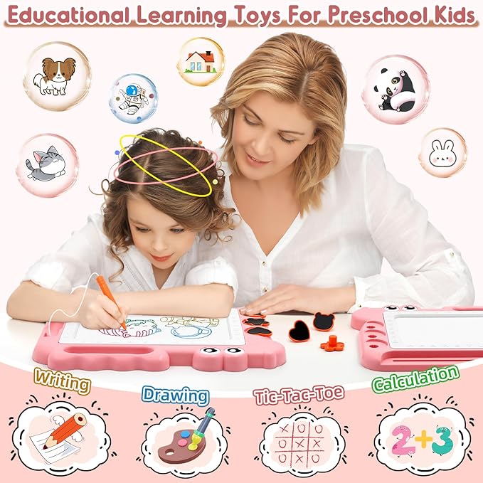 AiTuiTui Magnetic Drawing Board Toddler Toys Gift for Girls Boys, Color Sketch Writing Scribble Doodle Pad Travel Games, Educational Learning Kids Toys for Toddlers Birthday (Pink)