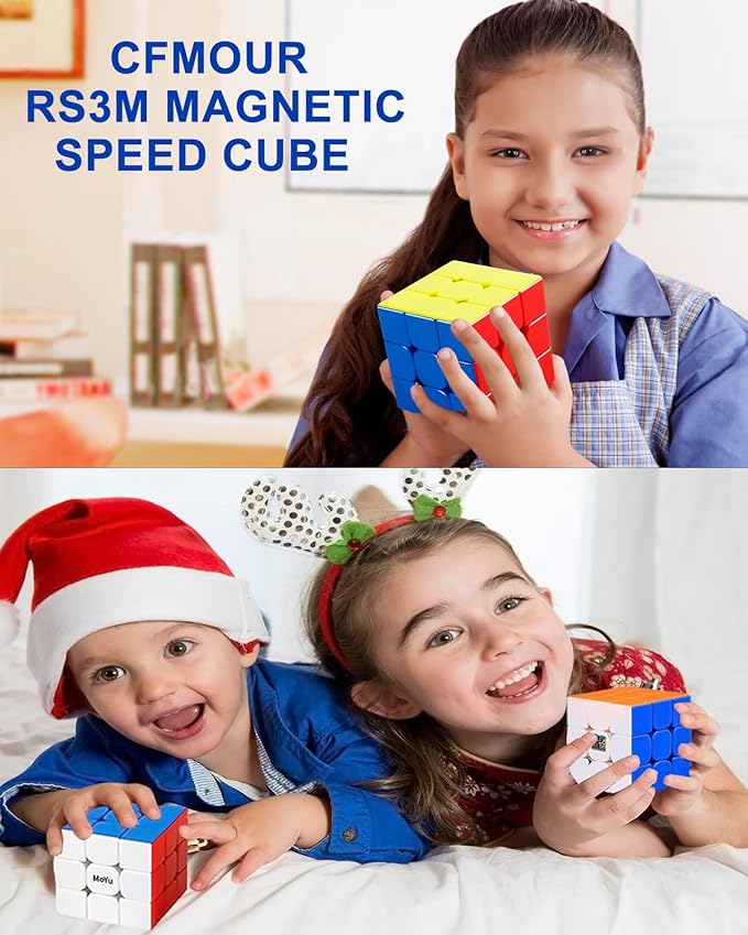 CFMOUR Magnetic Speed Cube 3x3 - Moyu RS3M Stickerless Cubes with Stand, 48 Magnets - Super Fast Problem-Solving Brain Teaser Puzzle Toy for Kids & Adults