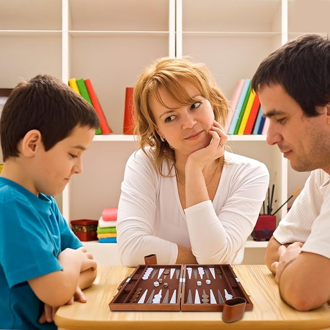 Backgammon Set - Classic Board Game with Premium Leather Case - Portable Travel Strategy Backgammon Game Set for Adults, Kids - Suitable as (15inch, Brown)