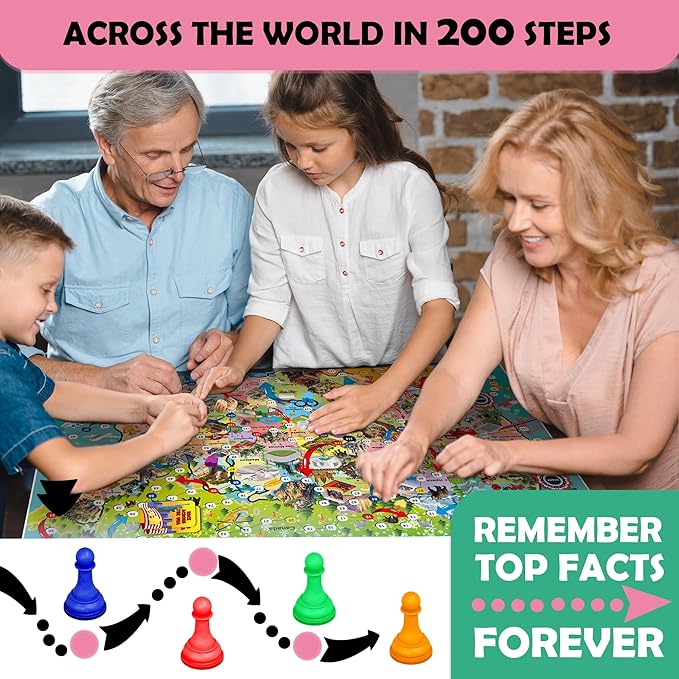 QUOKKA Board Game 1 to 10 Players - Learning, Educational - Geography, United States - 120 Question Cards, Top Facts - Indoor, Outdoor - Kids, Teens, Adults, Family