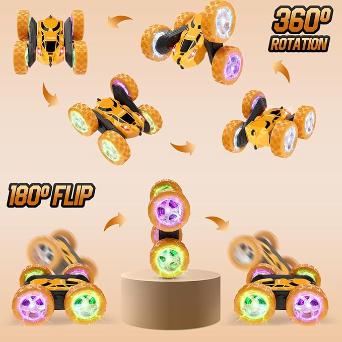 Remote Control Car, 360° Rotating 2.4GHz Fast Stunt RC Cars for Kids, Boy Toys Ages 6 7 8 9 10 Year Old, Gifts for Boys and Grils-Yellow