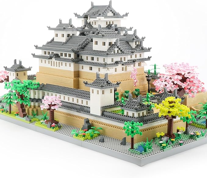 Japanese Micro Building Blocks Sets for Adults 10080 PCS Japan Himeji Castle with Cherry Blossoms Model Kit Big Architecture Landmarks Collection Kit