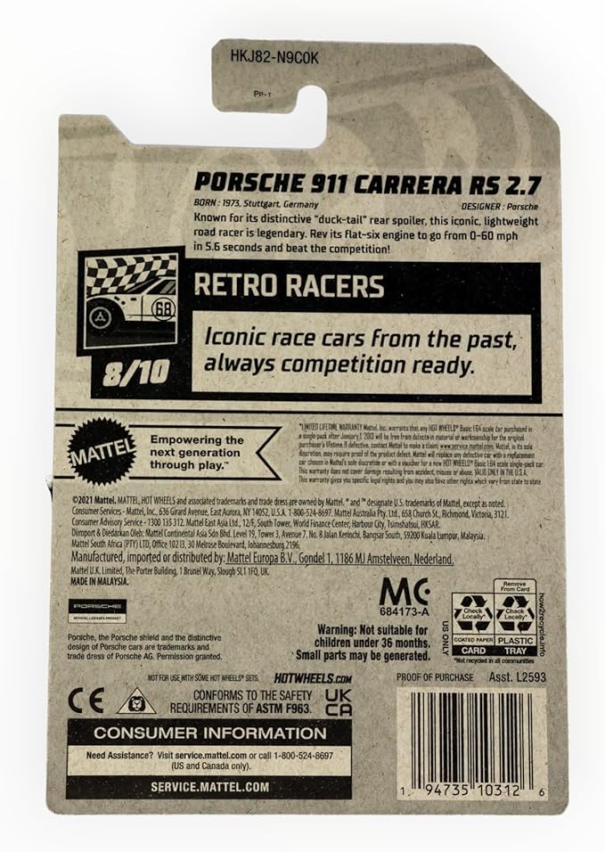 Hot Wheels Porsche 911 Carrera RS 2.7, Retro Racers 8/10 [Orange] 125/250