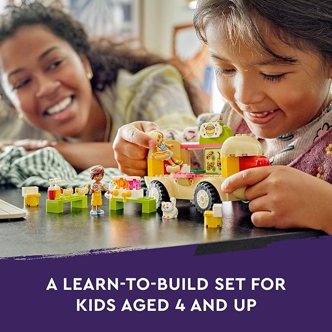 LEGO Friends Hot Dog Food Truck Toy with Mini Doll Characters and Cat Figure, Pretend Play Food, Toy Van, Creative Gift for Kids, Girls, and Boys, Ages 4 Years Old and Up, 42633