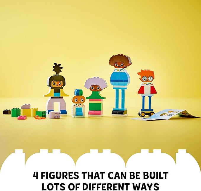 LEGO DUPLO Town Buildable People with Big Emotions Interactive Toy for Ages 3 and Up, 5 Characters with 10 Role-Play Faces, 71 Colorful Bricks for Mix-and-Match Customizable Fun, 10423