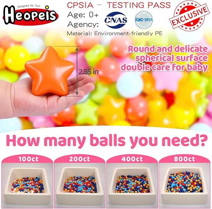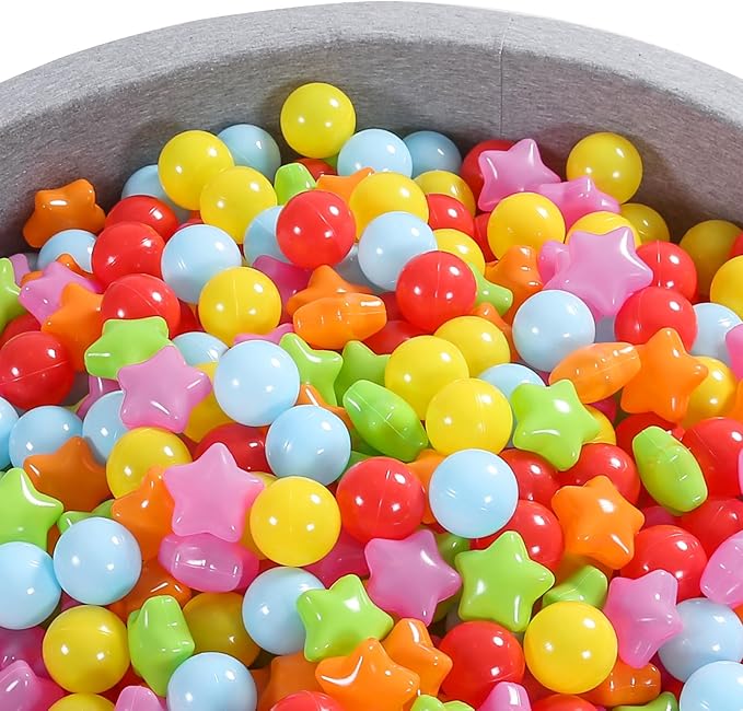 About This SAFETY : Pack of 100balls (50 stars,50 balls) , Phthalate & BPA Free, Made from non-toxic material, non-recycled... Read more