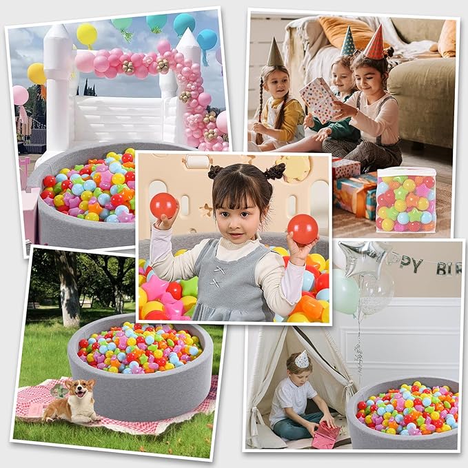 Ball Pit Balls Pack of 100 200 500 - Star and Round Set BPA Free Phthalate Free Non-Toxic Crush Proof Play Balls Soft Plastic Balls for Toddlers Baby Kids Birthday Pool Tent Party