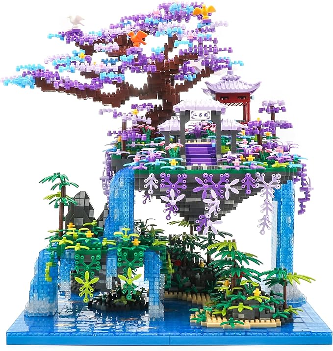 The Moon Palace Chinese Architecture Micro Building Blocks Set with LED Lights, 4574PCS Cherry Blossom Tree Model Kit, Collectible Cultural Gift for Adults & Teens