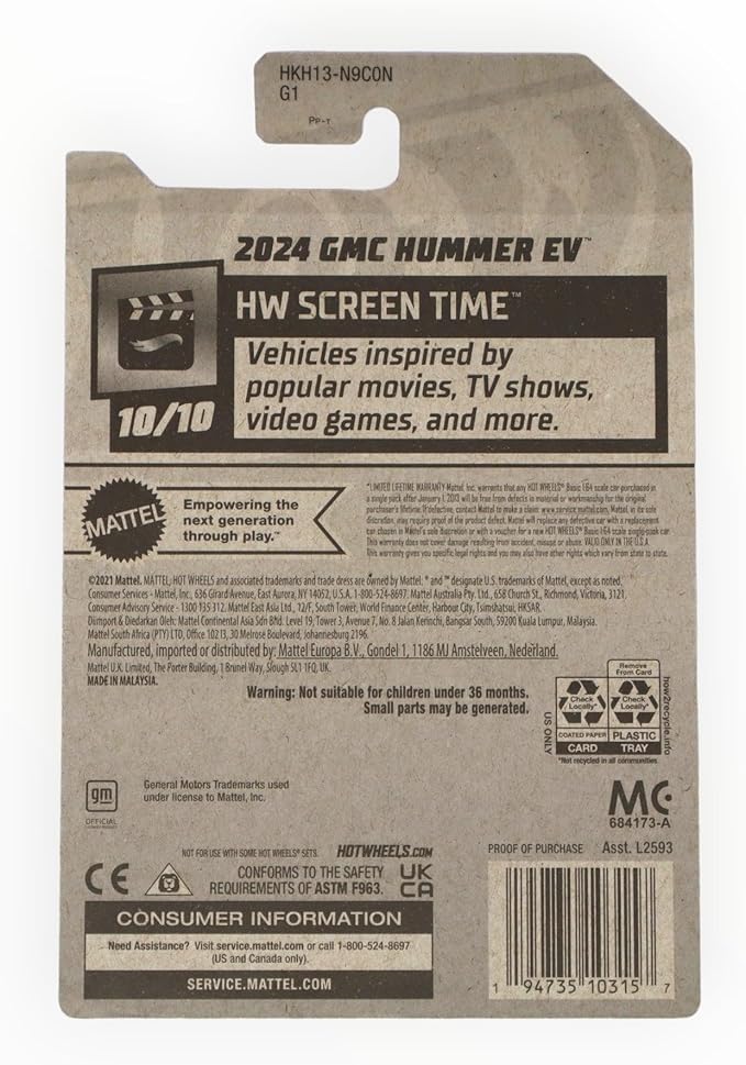 Hot Wheels 2024 GMC Hummer EV, HW Screen Time 10/10 [Gray] Barbie The Movie 184/250