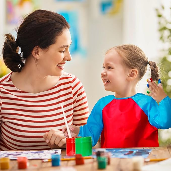 About This Polyester Imported PREMIUM QUALITY & SAFE: Our kids art smocks painting smocks are made of smooth, waterproof polyester... Read more