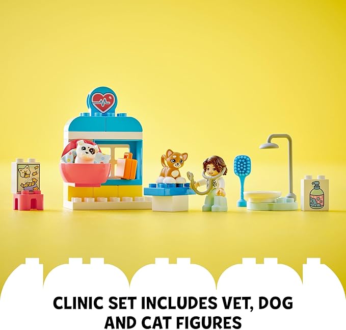 LEGO DUPLO Town Visit to The Vet Clinic Pet-Care Role-Play Toy, Dog, Cat and Veterinarian Figures, Social Emotional Learning Pretend Play Animal Set for Toddlers Aged 2 Years Old and Up, 10438