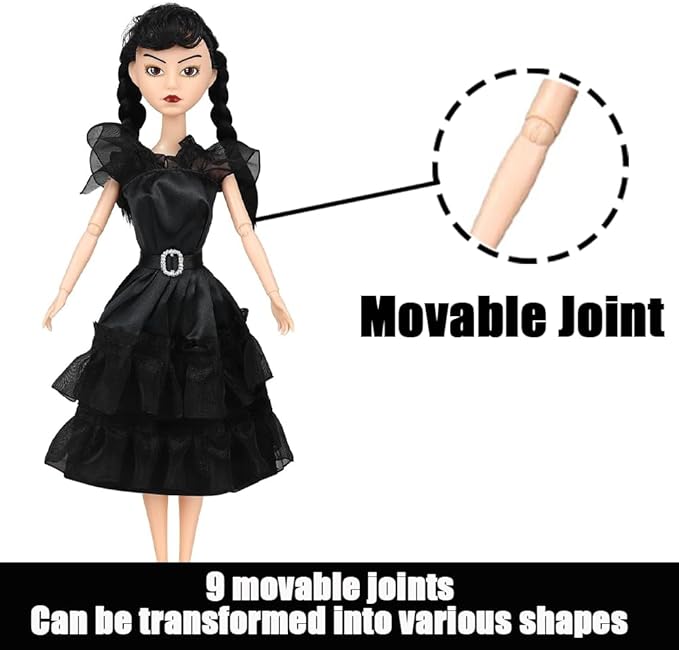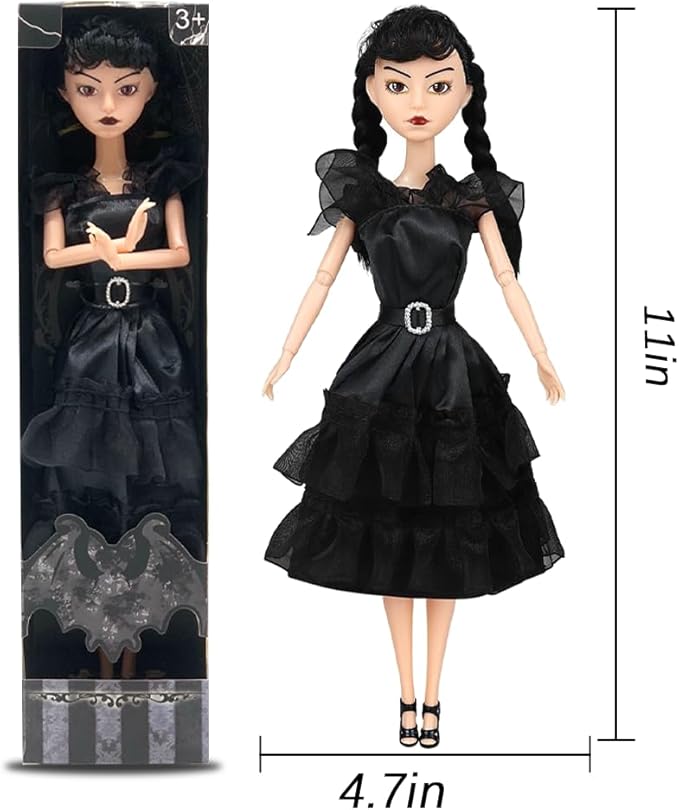 11.5'' Addams Doll, Black Dress, High Heels, and Hair, Christmas Decoration Perfect ChristmasToy Gift for Girls & Fans (B1)