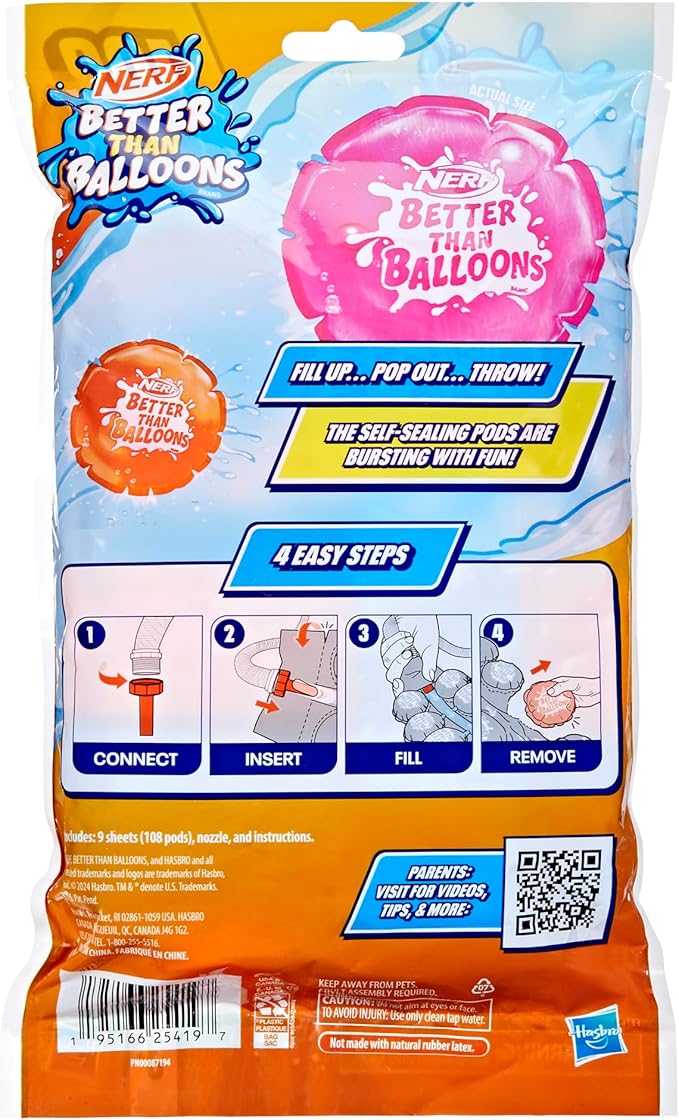 NERF Better Than Balloons Water Toys, 108 Pods, Easy 1 Piece Clean Up, Lots of Ways to Play, Backyard Water Fun, Gifts for Kids, Ages 3+