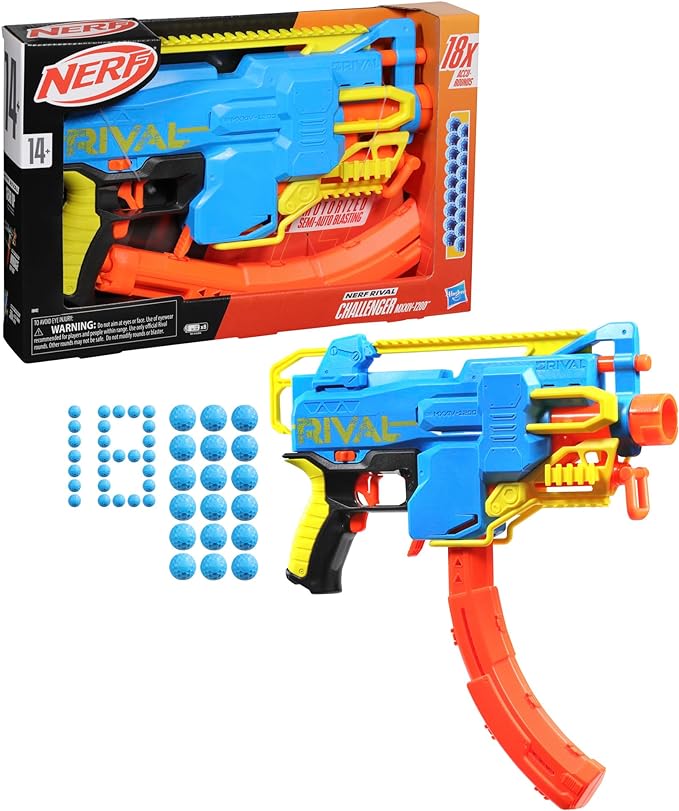 About This NERF RIVAL CHALLENGER MXXIV-1200 BLASTER: Fire a dozen rounds in a row! The motorized blaster features a removable... Read more