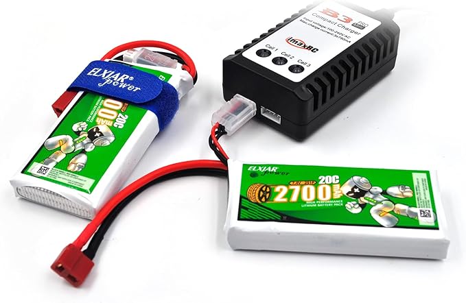 (2-Pack) 7.4V 2700mAh 20C Li-Po Battery Replacement for WLTOYS 12428 1/12 RC Car with Deans-T Plug and 2S Balance Charger Upgrade Rechargeable Pack