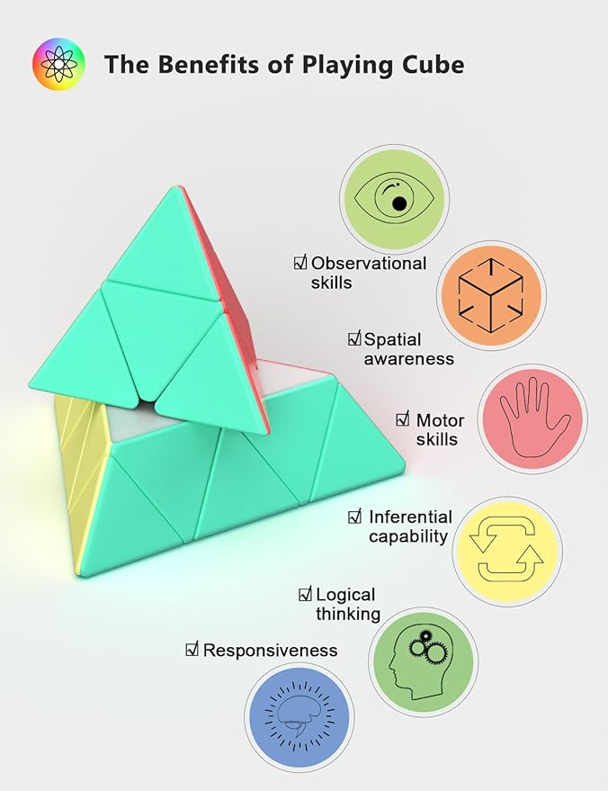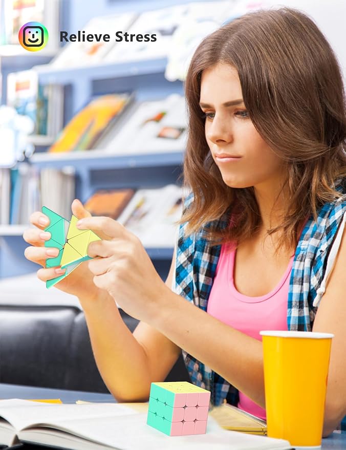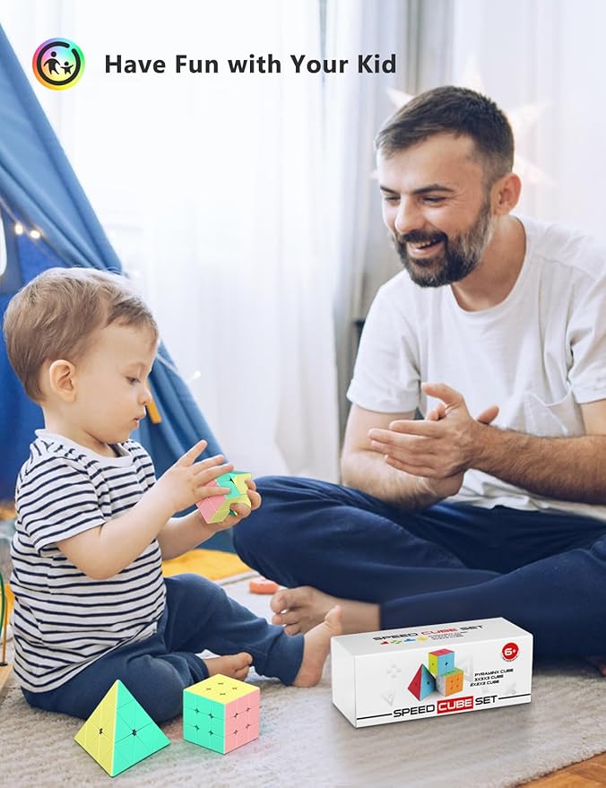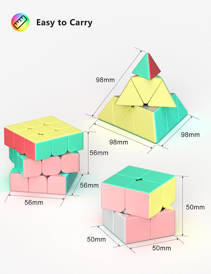 Vdealen Speed Cube Set, 2x2x2 3x3x3 Pyramid Magic Cube Set, Puzzle Cube Toys Birthday Party Christmas Stocking Stuffers Gift for Kids Teens Adults(Macaron Stickerless)