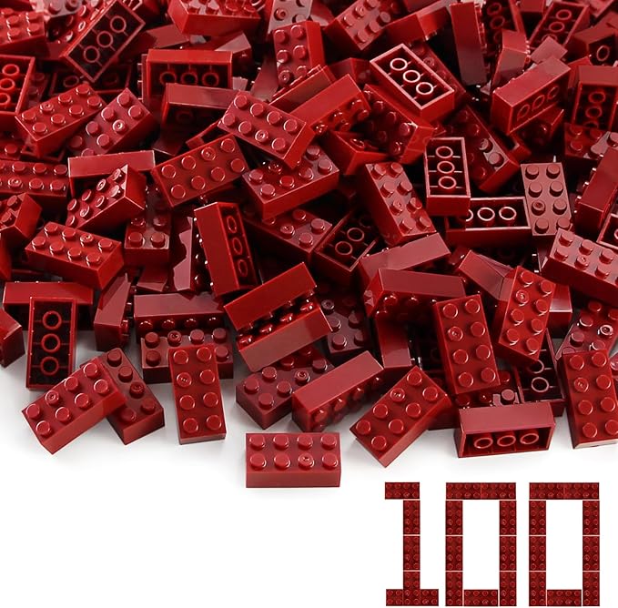 Feleph 100pcs 2x4 Bricks Dark Red Pieces Parts Classic Building kit Creative Play Set Basic Blocks Toy Accessories Compatible with 3001 Major Brands