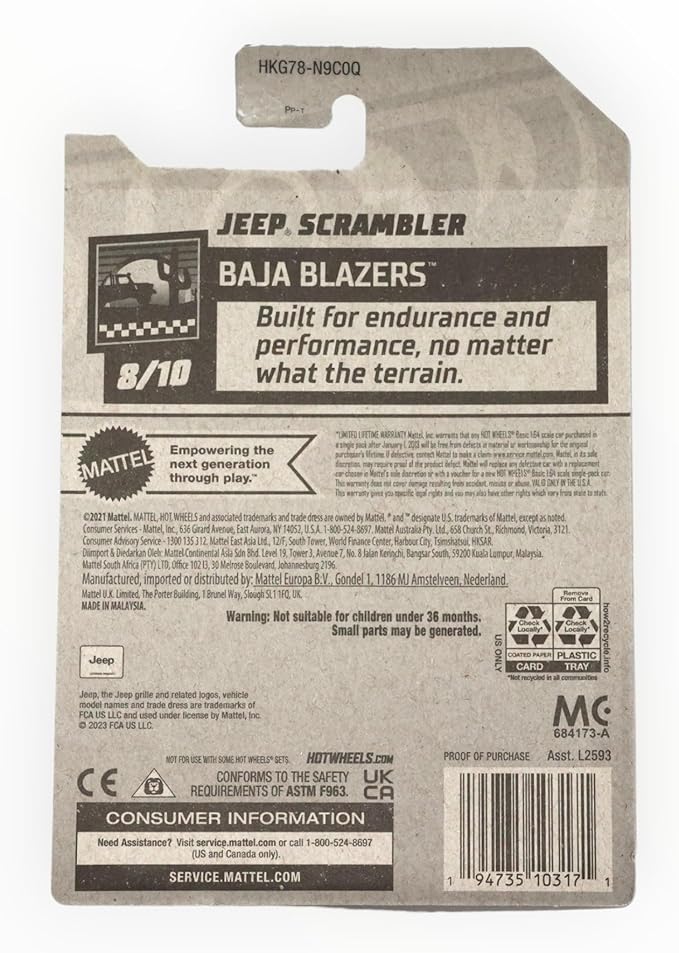 Hot Wheels Jeep Scrambler, Baja Blazers 8/10 [Gray] 233/250