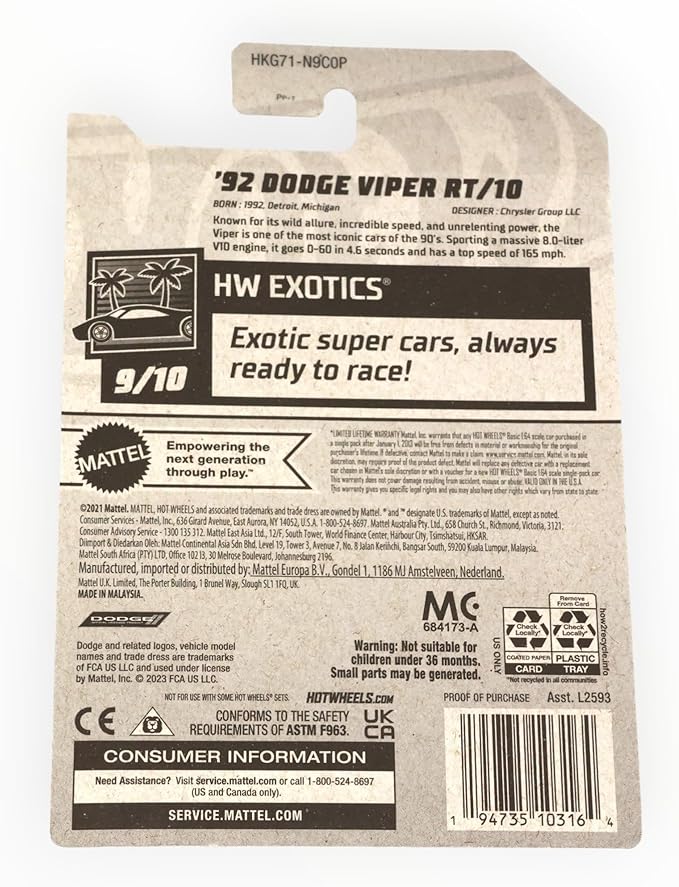 Hot Wheels '92 Dodge Viper RT/10, HW Exotics 9/10 [red] 236/250