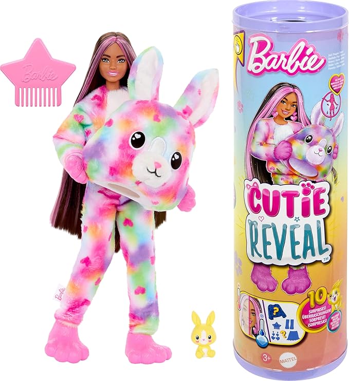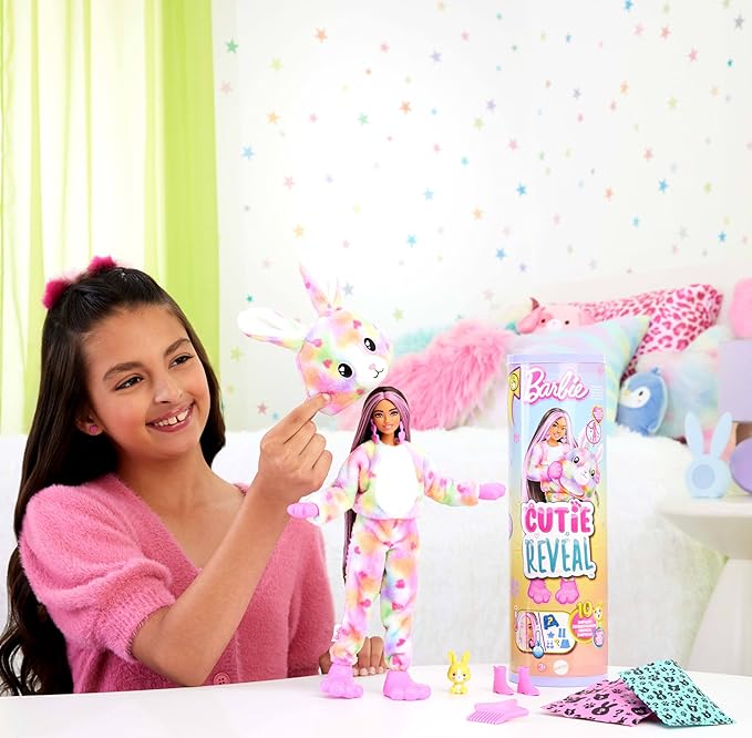 Barbie Cutie Reveal Doll & Accessories, Color Dream Series, Tie-Dyed Bunny Costume & 10 Surprises Including Color Change