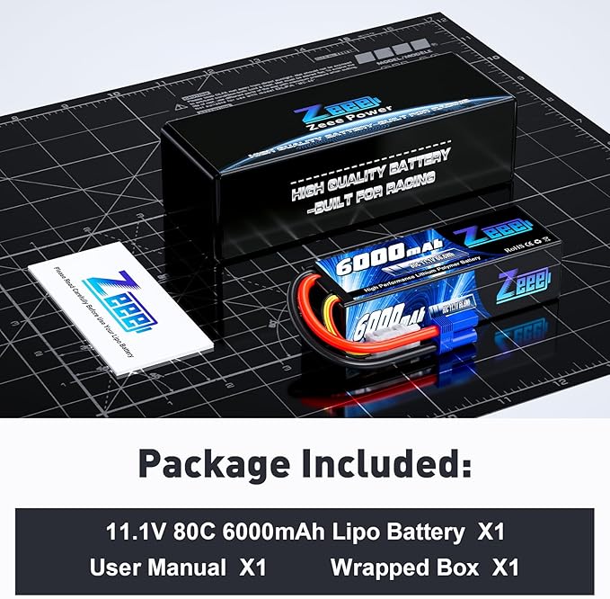 About This 【Zeee 3S Lipo Specification】- Battery Voltage: 11.1V; Configuration: 3S1P; Cell voltage: 3.2~4.2V; Capacity: 6000mAh; Discharge: 80C; Plug: EC5... Read more