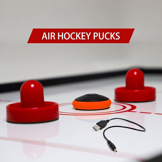 About This This Set Include 2 air hockey pushers, 1 Rechargeable pucks, and 1 USB charging cable. Floating Air hockey... Read more