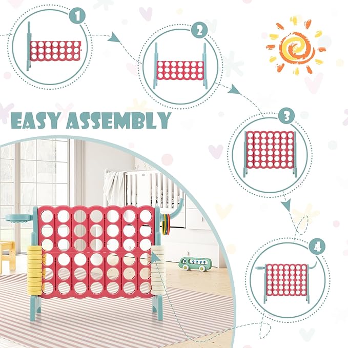 Costzon Giant 4-in-A-Row, Jumbo 4-to-Score Giant Game w/Basketball Hoop, Ring Toss, Quick-Release Slider, 42 Jumbo Rings, Indoor Outdoor Family Connect Game for Kids & Adults, Backyard Games
