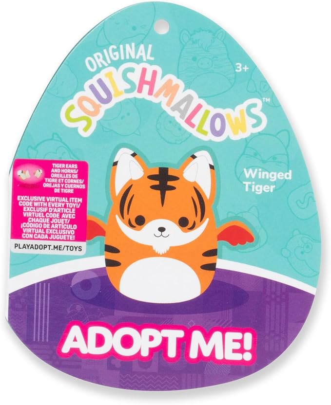 Squishmallows Original Adopt Me! 8-Inch Winged Tiger Plush - Little Ultrasoft Official Jazwares Plush - Virtual Item Code Included