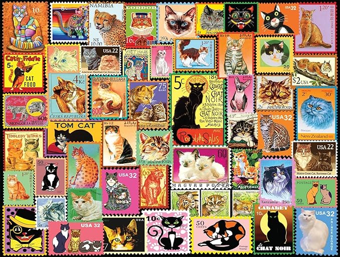 Buffalo Games - Lewis T. Johnson - Cats on Stamps - 750 Piece Jigsaw Puzzle for Adults -Challenging Puzzle Perfect for Game Nights - Finished Size is 24.00 x 18.00