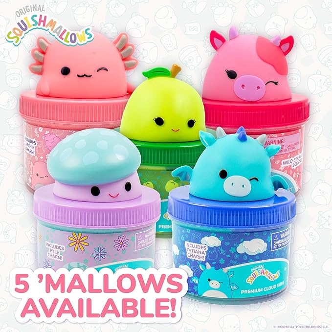Original Squishmallows Pyle The Mushroom Premium Cloud Slime, Grape Scent, 8 oz. Jar Storage Container with Figurine Topper, Rubber Charm, Goodie Bags Stuffers, Kids Party Favors, Sensory Toys