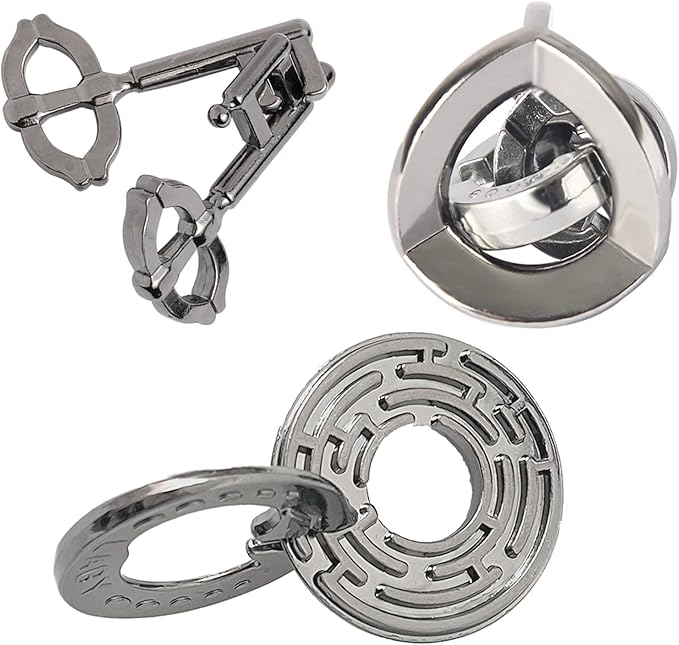 Metal Brain Teasers Puzzles 3PCS Unlock Interlocking Puzzles IQ Logic Test Disentanglement Educational Toy for Kids Adults