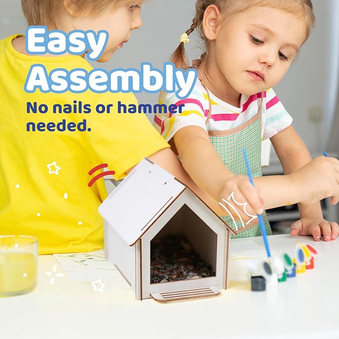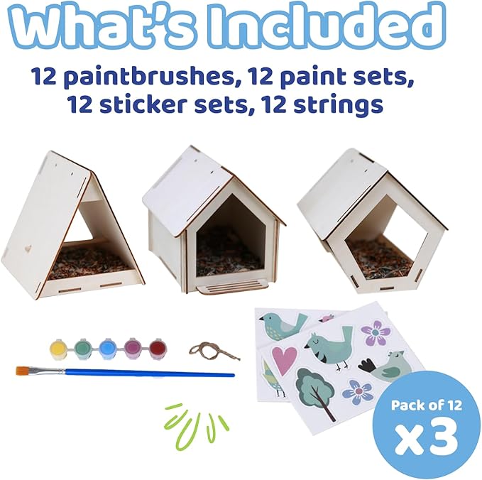 Neliblu Bird Houses to Paint for Kids - Wooden - 12 Pc, Plywood, Durable Material, Educational Fun, Complete Set, Child-Safe, Bulk Crafts - Paint a Bird House Kit for Kids