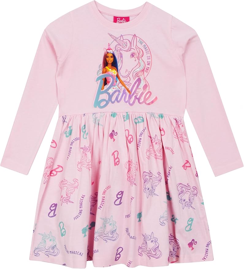 About This Exclusive Barbie Unicorn Dress: This girls' dress is a magical canvas, showcasing a beautiful turquoise and pink line... Read more
