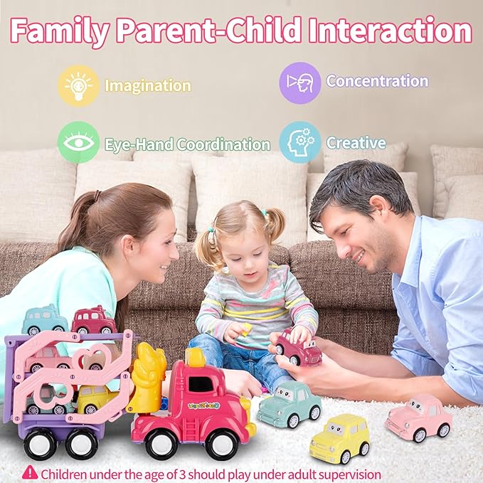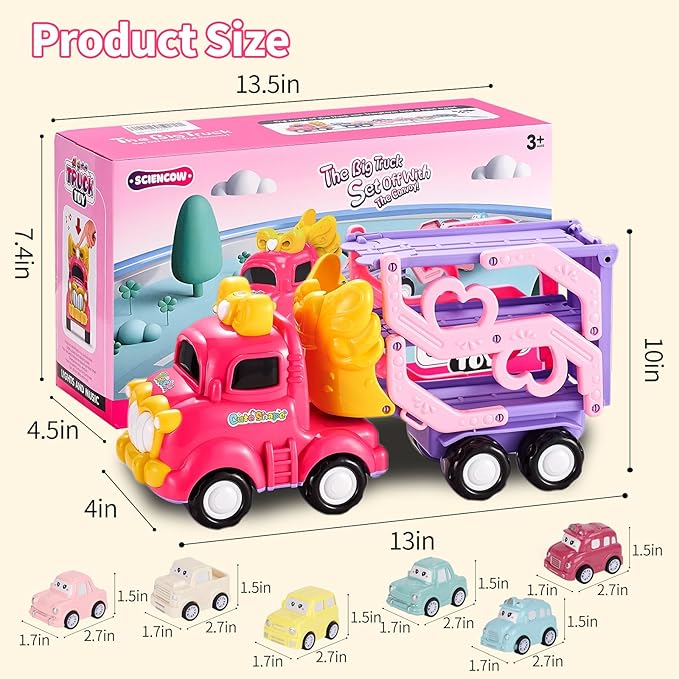 About This 7-IN-1 TODDLER GIRLS TRUCK SET:This magical set includes 1 foldable transport truck and 6 colorful mini pull-back cars,... Read more