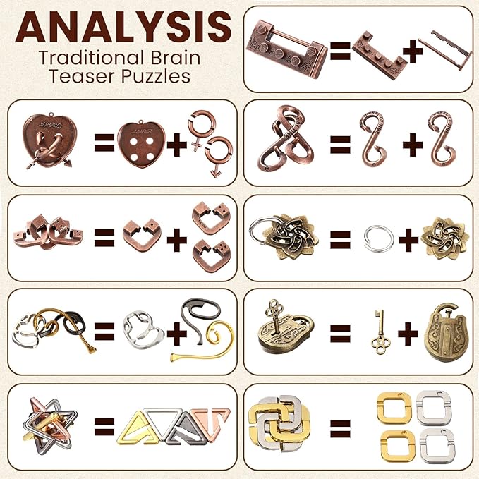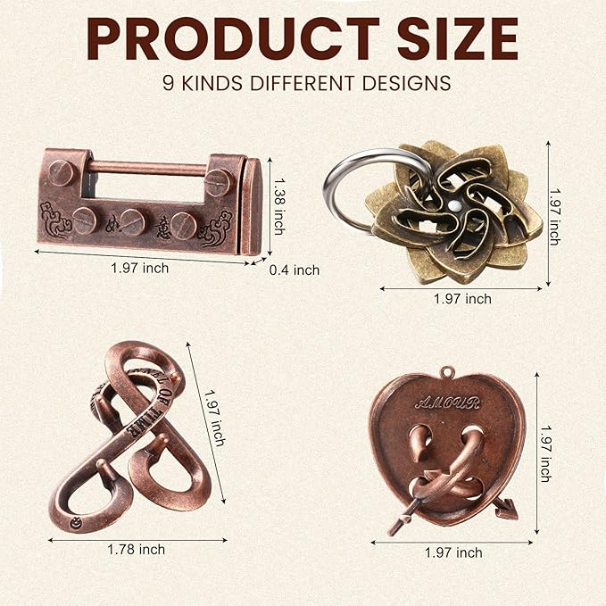 About This 9 Pieces Metal Puzzles: there are 9 pieces of puzzles for adults in different difficulty, which is carefully... Read more