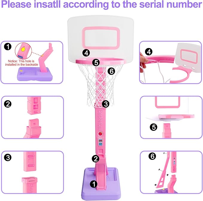 Toddler Girl Basketball Hoop Indoor Pink Adjustable Mini Basketball Goal with Ball Pump for Outdoor Poolside Toys Backyard Game Outside Basketball Toy for Kids Age 1-3 3-5 6 7 4-8 Birthday Gift