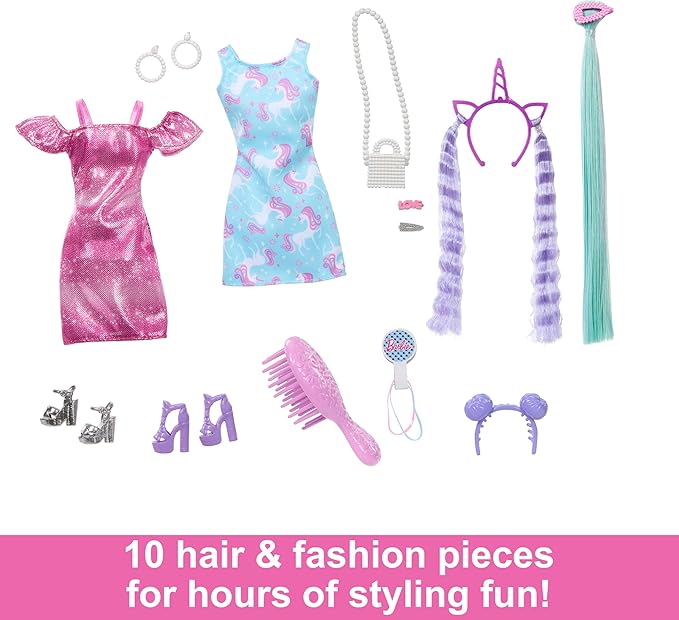 Barbie Fun & Fancy Set, Fashion Doll with Extra-Long Color-Streaked Black Hair, Clothes & Styling Accessories