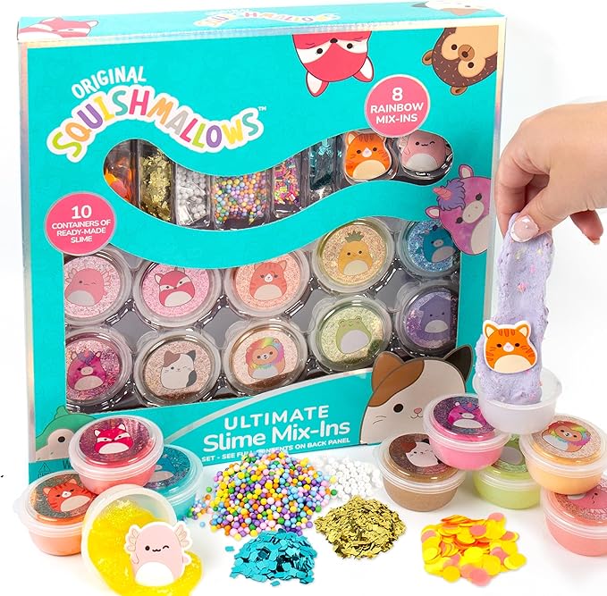 Squishmallows Original Ultimate Slime Mix'Ins, 10-Pack, Glitter & Cloud Slime, 8 Fun Slime Add Ins, Pre-Made Slime for Kids, Crunchy Slime, Slime Bulk, Great 6 Year Old Toys, Super Soft Sludge Toy